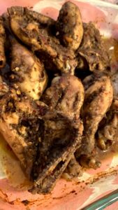 When ready to cook, preheat the oven at 400 degrees Fahrenheit ,arrange the chicken pieces in an ovenproof dish, drizzle some olive oil and bake in medium heat oven for about an hour, check for doneness, you can continue cooking for 15 minutes if you feel it is not ready.